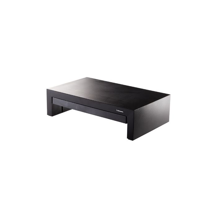 Fellowes Support pour écrans Designer Suites, noir 3 hauteurs réglables: 110 mm / 130 mm / 150 mm, compartimentde rangement intégré, pour écrans jusqu'à 53,34 cm (21"), capacité de charge max.: 18 kg, convient pour écrans larges,dimensions: (L)406 x (P)238 x (H)110 - 150 mm (8038101)