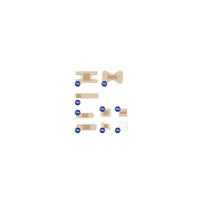 FIRST AID ONLY Boîte à pansements Industrie/Commerce boîte en plastique refermable, contenu : 100 pansements (10 pansements articulations du doigt, 10 pansements bout du doigt, 10 pansements pour les doigts, 15 petits panse- ments, 10 pansements étanches ovales, 10 pansements ovales (P-10023) 20 pansements d'urgence) dimensions de la boîte : (L)210 x (P)135 x (H)42 mm