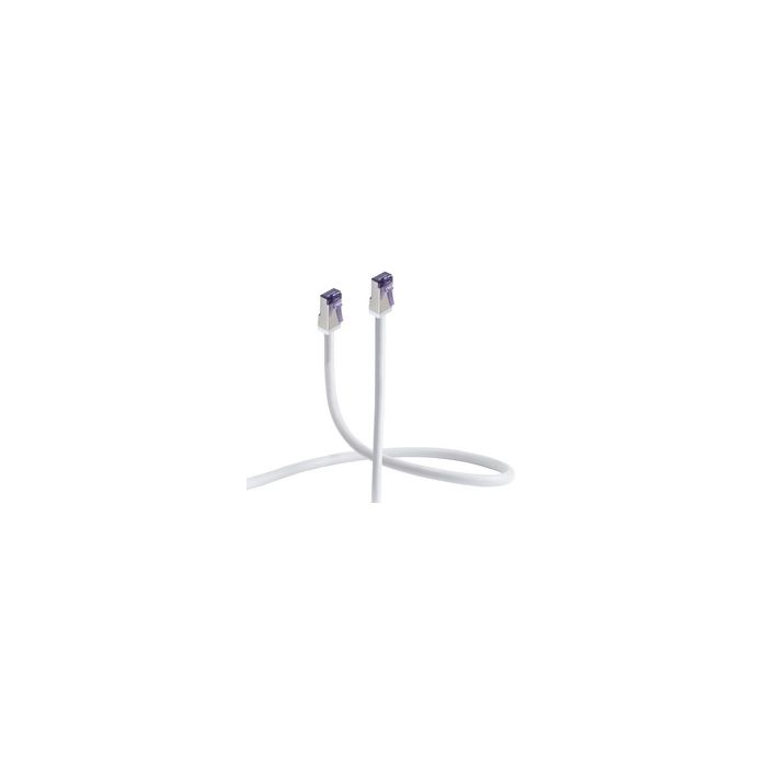FLEXLINE Câble patch, cat. 6A, S/FTP, très flexible, 1 m RJ45-RJ45, 500 MHz, gaine externe flexible, blindage double,matériau conducteurs: cuivre, nombre de fils: 8 (4x2 twistedpair), fiche moulée, broches plaquées or 3 microns, câble rond, diamètre câble: 6,2 mm, couleur câble: blanc (FL31-28026) fiche de forme courte
