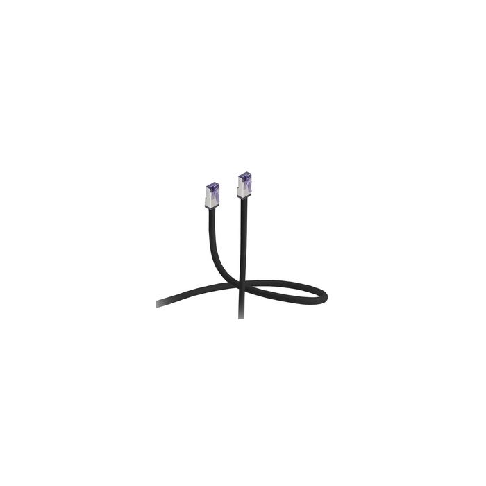 FLEXLINE Câble patch, cat. 6A, S/FTP, très flexible, 5 m RJ45-RJ45, 500 MHz, gaine externe flexible, blindage double,matériau conducteurs: cuivre, nombre de fils: 8 (4x2 twistedpair), fiche moulée, broches plaquées or 3 microns, câble rond, diamètre câble: 6,2 mm, couleur câble: noir (FL31-28055) fiche de forme courte