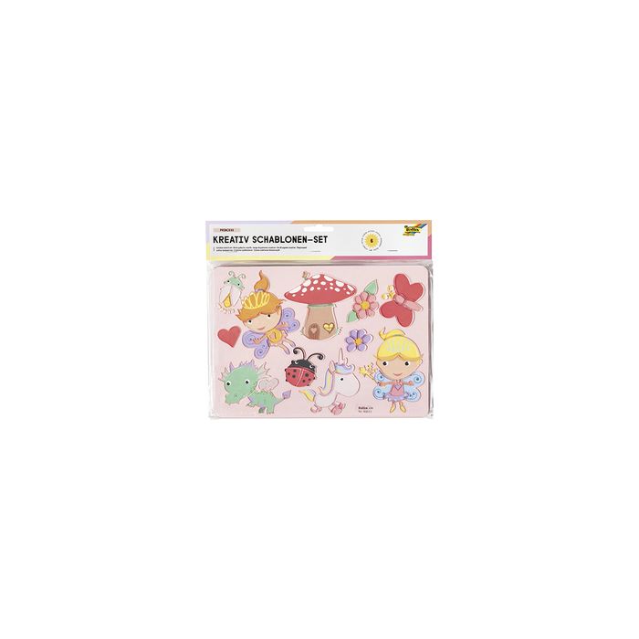 folia Pochoirs créatifs "Princess" en polystyrène, sur le thème de "Princesse" & "Animaux fantastiques", pour dessiner lees contours, modèles de dessin imprimés sur les deux faces contenu : 6 pièces (40613)