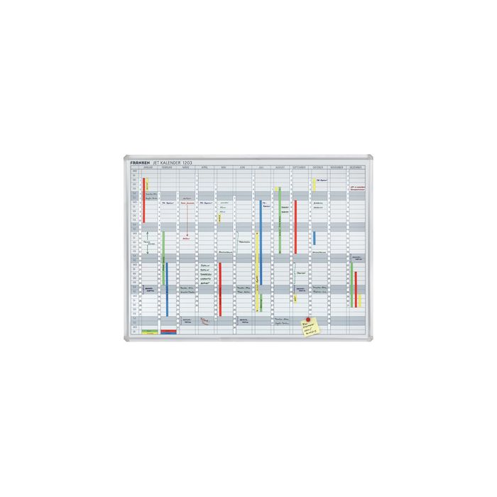 - Januar bis Dezember und Wochentage sind fest eingedruckt, Datum wird handschriftlich oder mit Magnetstreifen makiert