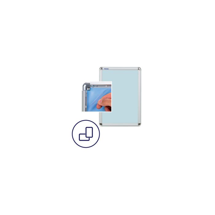 FRANKEN Cadre porte-affiches A3, largeur du cadre: 25 mm cadre à clapet en aluminium argent anodisé, coins plastique,adapté pour un montage mural, face arrière stable en polystyrène, film de protection anti-reflets dimensions: (L)327 x (T)12 x (H)450 mm (BS0702)