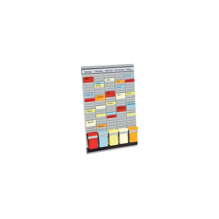 FRANKEN Tableau planning à fiches T, (L)819 x (H)780 mm 12 modules, taille 2, + 2 index taille 1 à 35 emplacements, tableau: gris, cadre en plastique, contenu: 1 ensemble de profils de connexion, 1.200 fiches T taille 2, 12 supports de fiches taille 2, 2 supports de fiche taille 1 (PV-SET4)