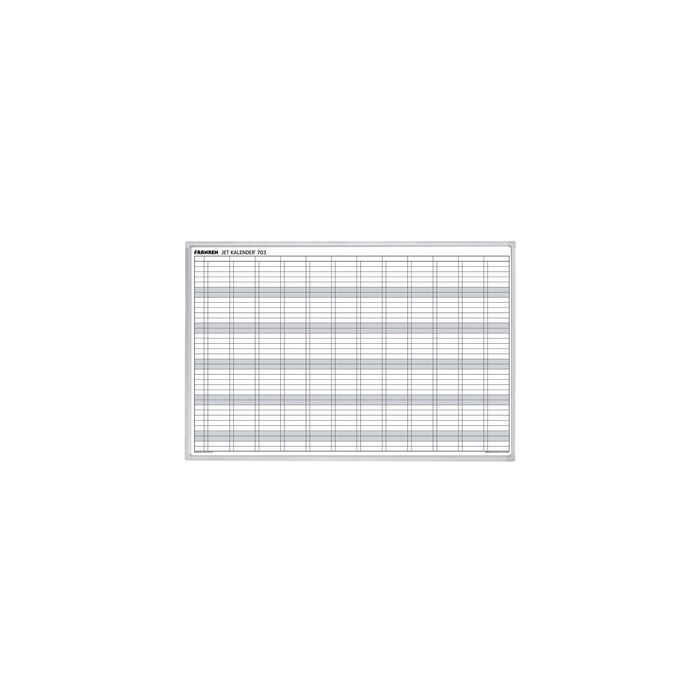 FRANKEN Tableau planning JetKalender, calendrier annuel 12 mois, (L)900 x (H)600 mm, cadre: 57x13 mm, blanc, aimantée, inscriptible, laqué, cadre: aluminium, coins: plastique, impression des mois de janvier jusqu'en decembre et jours de la semaine, avec auget, 1 tableau, 1 marqueur Fine et 2 aimants inclus, (JK703)
