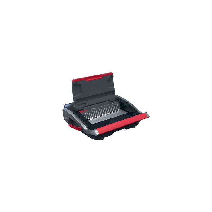 GBC Perforelieuse CombBind CB25, noir/rouge/argent jusqu'à A4, capacité de perforation: 25 feuilles, capacité de reliure: 390 feuilles, diamètre max. du peigne: 45 mm, perforation manuelle, 21 trous, réglage latéral des marges, dimensions : (L)497 x (P)394 x (H)402 mm (4410063)