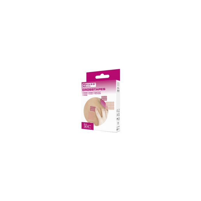 HARO Crosstape, taille: M/L applications diverses: tendons, ligaments, muscles tendus, cicatrices, etc., résiste à l'eau, sans latex, 100 % viscose, très doux pour la peau, contenu: 4 x 45 x 52 mm (beige) / 18 x 23 x 35 mm (magenta) (10165)