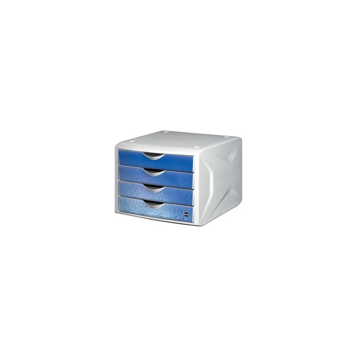 helit Module de classement "the chameleon", décor cold water4 tiroirs, en polypropylène incassable, couleur du boîtier: blanc, empilable, avec poignée, tiroirs avec butée d'arrêt, dimensions: (L)262 x (P)330 x (H)212 mm dimensions intérieures tiroir: (L)225 x (P)305 x (H)40 mm (H6129634) face avant decorée selon la methode IML impression durable, résistant aux rayures et chocs