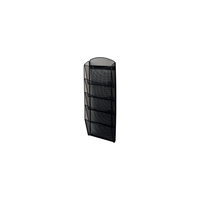helit Porte-brochures mural "the news network", noir A4 portrait, fil de fer thermolaqué, dimensions intérieures d'un compartiment: (L)248 x (P)35 mm, dimensions: (L)260 x (P)104 x (H)718 mm, livré complètement monté, avec matériel pour fixation murale, 5 compartiments (H6260095)