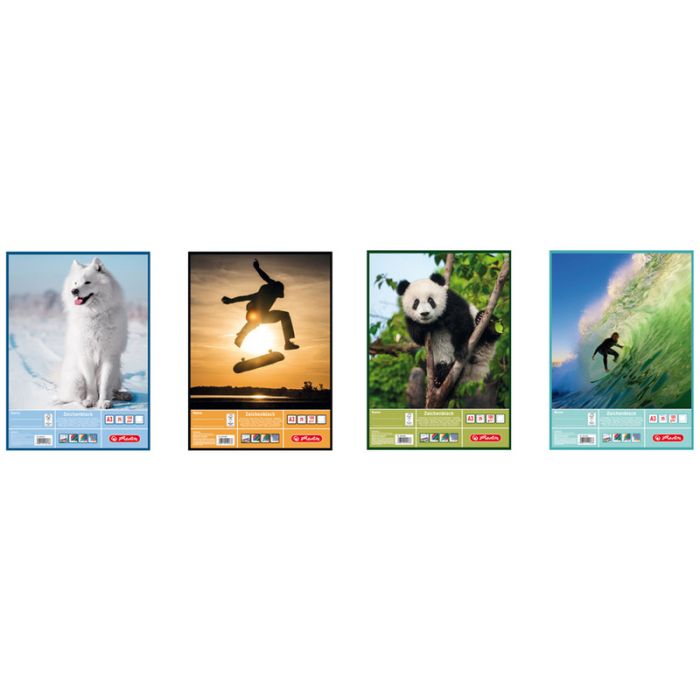 herlitz Bloc à dessin A3, 100 g/m2, 25 feuilles sans bois, tête collée, la livraison s'effectue assortie en différents motifs - pas de choix spécial de motif! (nouveau: 400138344 / ancien: 10416634-001)