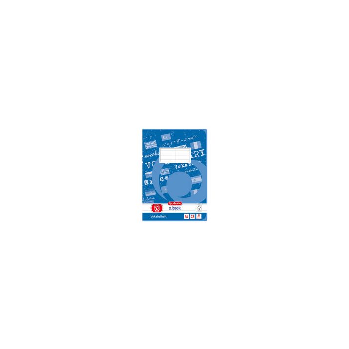herlitz Cahier de vocabulaire x.book, A5, 2 colonnes, -------------- pour le marché: D / L / A / CH --------------64 pages, 80 g/m2, sans bois, linéature 53, couverture en carton solide, CO2 réduit, bords arrondis (nouveau: 300004543 / ancien: 00415588)