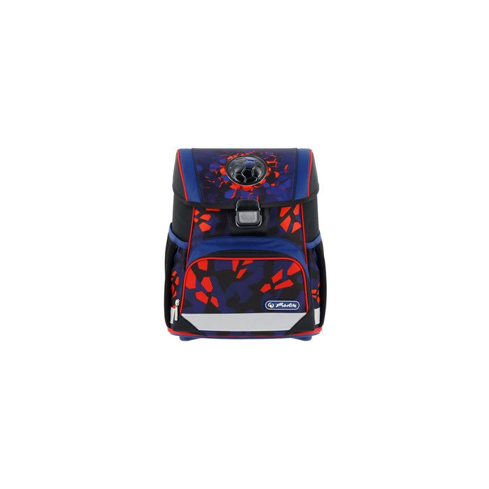 herlitz Cartable Loop Plus "Kick Off" polyester, dos rembourré ergonomique, plaque de fond solide,matériau en partie réfléchissant, bretelles réglables, sangle de poitrine réglables en hauteur, fermeture par clic,incl. étui, trousse et sac de sport (400205564) dimensions: (L)310 x (P)220 x (H)370 mm, capacité: 17 L, couleur: noir/bleu/rouge, motif: football