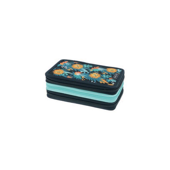 herlitz Étui scolaire TriCase "Happy Lions", 31 pièces en polyester, étui scolaire en 3 parties, 3 fermetures à zipde couleur, doublure colorée, garni de 31 pièces, (nouveau: 300001485 / ancien: 50043422) garni de: stylo à bille, règle pochoir, feutres, crayons de couleur, crayons à papier, taille-crayon, gomme, règle, équerre, mini-rapporteur