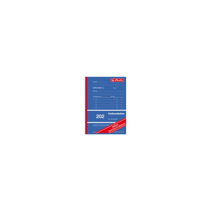 herlitz Formularbuch "Liefer-/Empfangsschein 205", DIN A5 -------------------- für den Markt: D ----------------------3 x 40 Blatt, 1. Blatt weiß, 2. Blatt gelb, 3. Blatt rosa, Papier holzfrei, selbstdurchschreibend, mit Schreibschutz- klappe, perforiert, gelocht (neu: 300010484 / alt: 00883546-001) Lieferscheinformular, Lieferscheinbuch