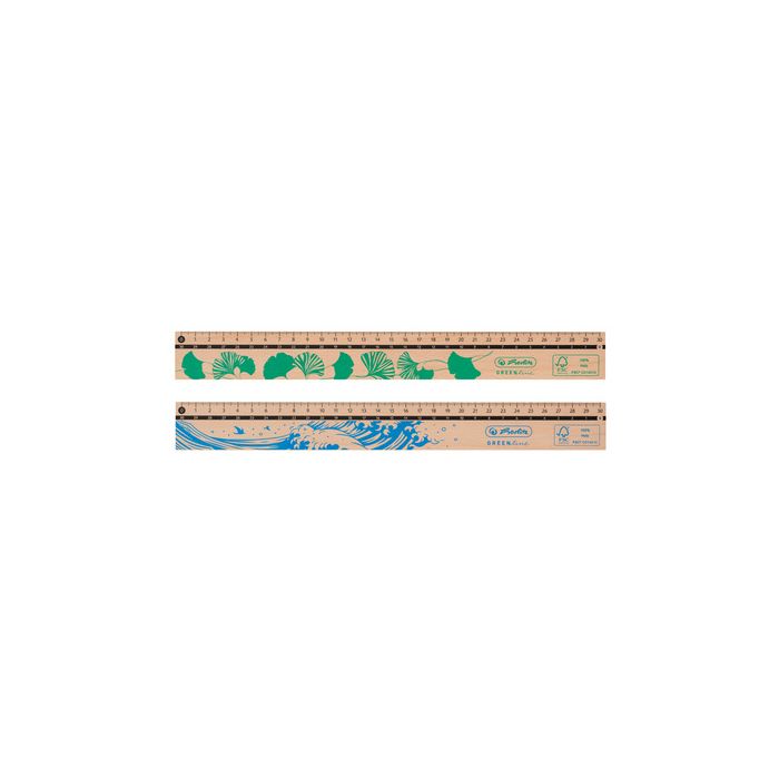 herlitz Règle en bois GREENline, 300 mm graduation pour droitiers et gauchers, imprimée sur les deux faces, disponible en plusieurs motifs différents - pas de choix de motif possible (nouveau: 300006039 / ancien: 50033621)