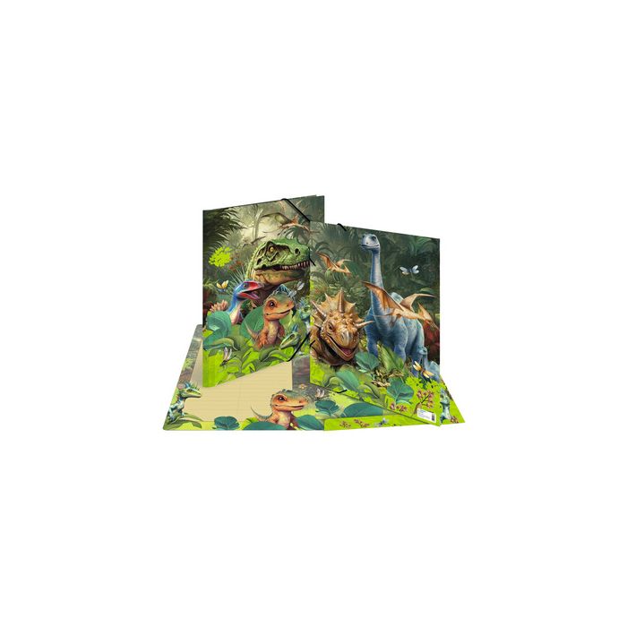 HERMA Chemise à élastique "Dino World", carton, A3 faces intérieures imprimées, avec élastique, rabats solides,dimensions: (L)315 x (P)4 x (H)440 mm (19576)