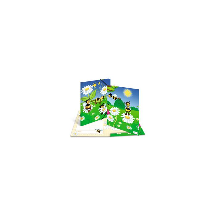 HERMA Chemise à élastiques animaux "Prairie mellifère", A3 carton, dimensions: (L)297 x (P)4 x (H)420 mm, avec 3 rabatsrieurs imprimés et des élastiques aux angles, impression intérieure avec table des matières (19635)