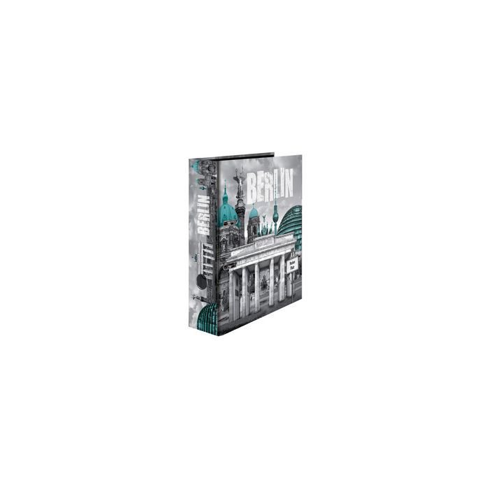 HERMA Classeur à levier à motifs "Berlin", A4, dos: 70 mm en carton solide, miroir interne imprimé, trou de préhension et mécanisme à levier de qualité, dos/couvercle imprimé d'emblèmes de métropoles (7170)