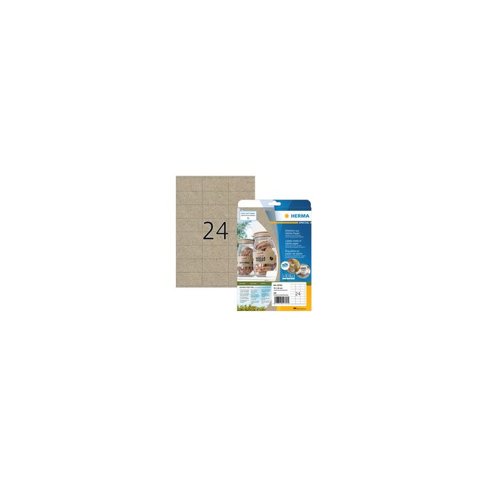 HERMA Étiquette en papier silphie, 48,3 x 33 mm, brun naturel, auto-adhésif, adhérence permanente, imprimable, pour imprimante à jet d'encre, laser et photocopieur, aspect moderne papier kraft, à base de 35% de fibres de silphie au minimum, (10752) contenu: 640 étiquettes sur 20 feuilles A4