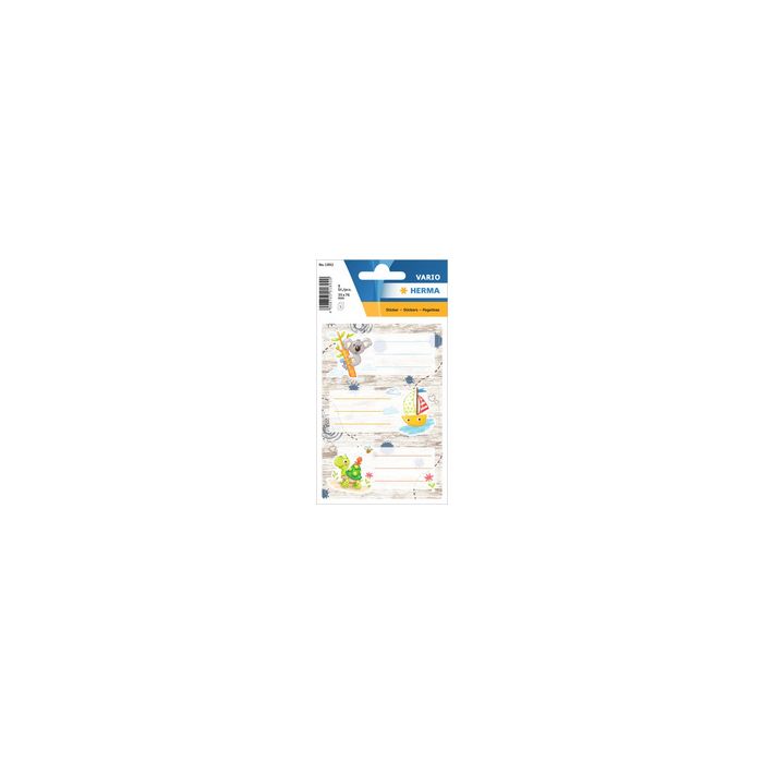 HERMA Étiquette pour livre VARIO "Copains de bac à sable" autocollant pour les tout petits, pour étiqueter livres & cahiers, autoadhésif, pour inscription manuelle, étiquette: 76 x 35 mm contenu: 3 planches de 3 étiquettes (1892)
