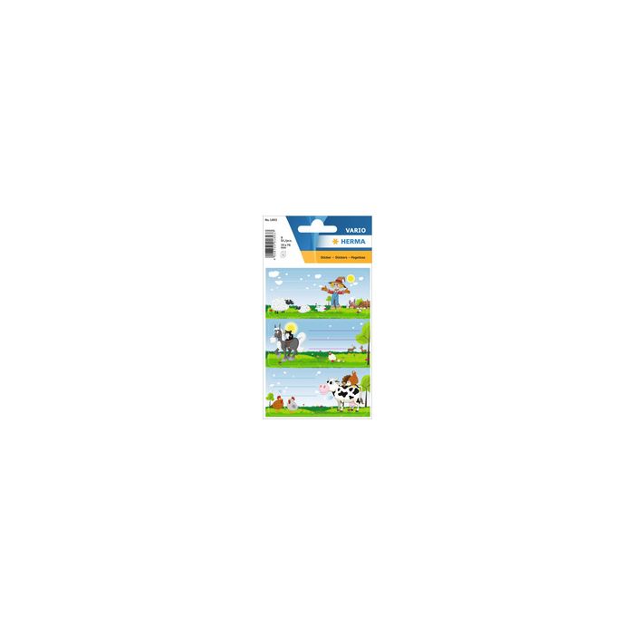 HERMA Étiquette pour livre VARIO "Petite ferme" autocollant pour les tout petits, pour étiqueter livres & cahiers, autoadhésif, pour inscription manuelle, étiquette: 76 x 35 mm contenu: 3 planches de 3 étiquettes (1893)
