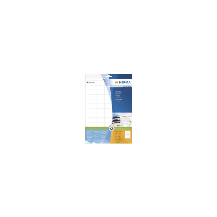 HERMA Etiquette universelle PREMIUM, 38,1 x 21,2 mm, blanc avec bord, autocollant, adhérence permanente, blanchi sans chlore, pour jet d'encre, imprimante à laser / couleur contenu : 650 étiquettes sur 10 feuilles A4 (8629) pour photocopieur