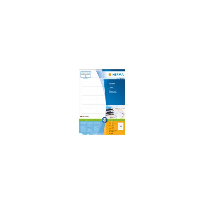 HERMA Etiquette universelle PREMIUM, 70 x 67,7 mm, blanc sans bord, autocollant, adhésion permanente, blanchi sans chlore, pour imprimante à jet d'encre, laser, laser couleur et photocopieuse contenu: 2.400 étiquettes sur 200 feuilles A4 (4617) 70,0 x 67,7 mm