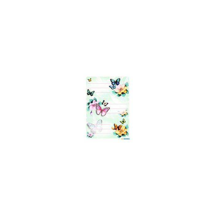 HERMA Étiquettes pour livres VARIO "Papillons", 76 x 35 mm pour étiqueter livres et cahiers, autocollant, pour inscription manuelle, étiquette: 76 x 35 mm, format de la planche: 84 x 120 mm contenu: 3 planches de 3 étiquettes (1796)