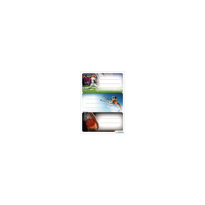HERMA Étiquettes VARIO "Sport", 76 x 35 mm étiquettes pour l'identification de fournitures scolaires comme les livres et les cahiers, autocollant, pour inscription manuelle, format de la planche: 84 x 120 mm contenu: 3 planches de 3 étiquettes (1793)
