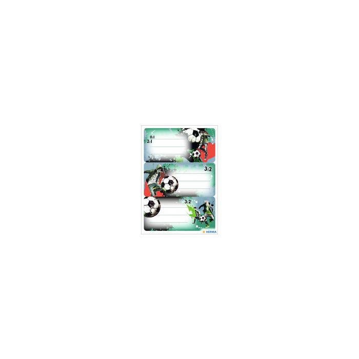 HERMA Étiquettes VARIO "Street Soccer", 76 x 35 mm étiquettes pour l'identification de fournitures scolaires comme les livres et les cahiers, autocollant, pour inscription manuelle, format de la planche: 84 x 120 mm contenu: 3 planches de 3 étiquettes (1766)
