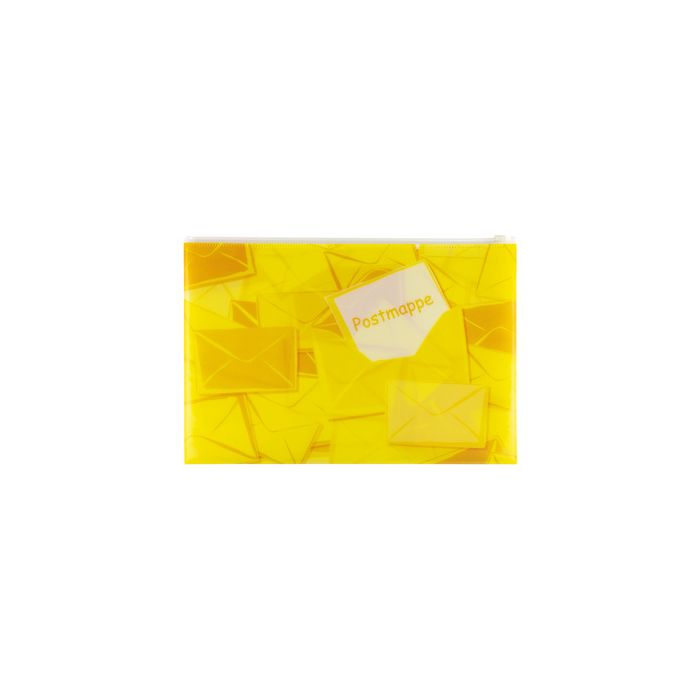 HERMA Postmappe mit Zipper, DIN A4, aus PP, gelb Reißverschlusstasche im A4 XL-Format, mit Kunststoff-Zipper für praktisches Öffnen und Schließen, langlebig, robust, abwischbar, mit rückseitiger Klarsichteinstecktasche für Stundenplan (20000)