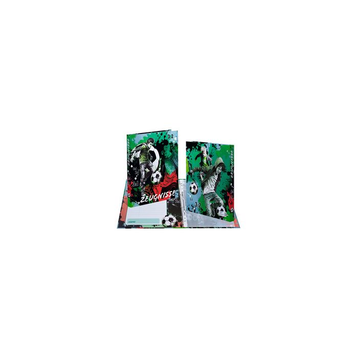 HERMA Zeugnisringbuch "Street Soccer", DIN A4 aus stabilem Karton, stabiles Cover, komplett bedruckt, mit Innendruck und Inhaltsverzeichnis zur Handbeschriftung, Aufdruck "Zeugnisse" auf Vorderdeckel und Rücken, 4-Ringmechanik, Lieferung inkl. 10 Prospekthüllen (20162)