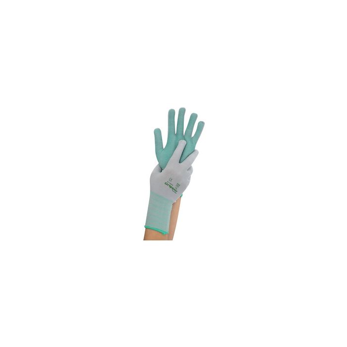 HYGOSTAR Gants de travail "GRIPPER", vert, XL nylon tricoté, avec des picots PVC en blanc sur la paume de main & les doigts, bonne sensibilité tactile, prise sûre, idéal pour le jardinage, l'agriculture, industrie & entrepôtcontenu: 1 paire (332735) dans un sachet