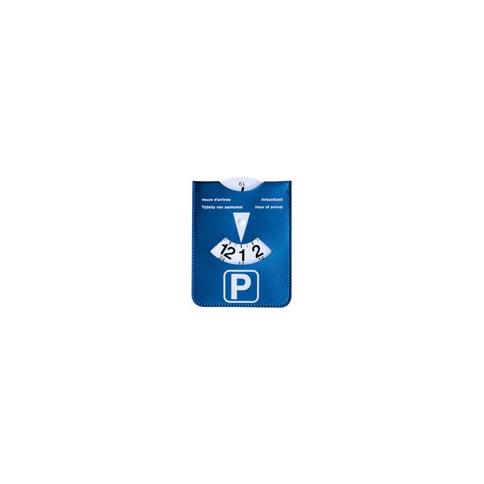 Kangaro Disque de stationnement, affichage 24 heures, bleu en carton avec étui similicuir, dim.: (L)100 x (H)128 mm, langues: allemand, anglais, français, néerlandais (K-0035D220)