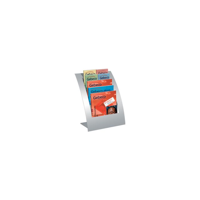 kerkmann Présentoir à prospectus de table Varia, A4 portrait5 bacs, gris argent, en acier thermolaqué, support en métal légèrement bombé, espace inférieur idéal pour inscriptions personnelles, 5 diviseurs de bac pour les prospectus au format DL, dimensions: (L)320 x (P)240 x (H)390 mm (43650614) profondeur du bac: 28 mm