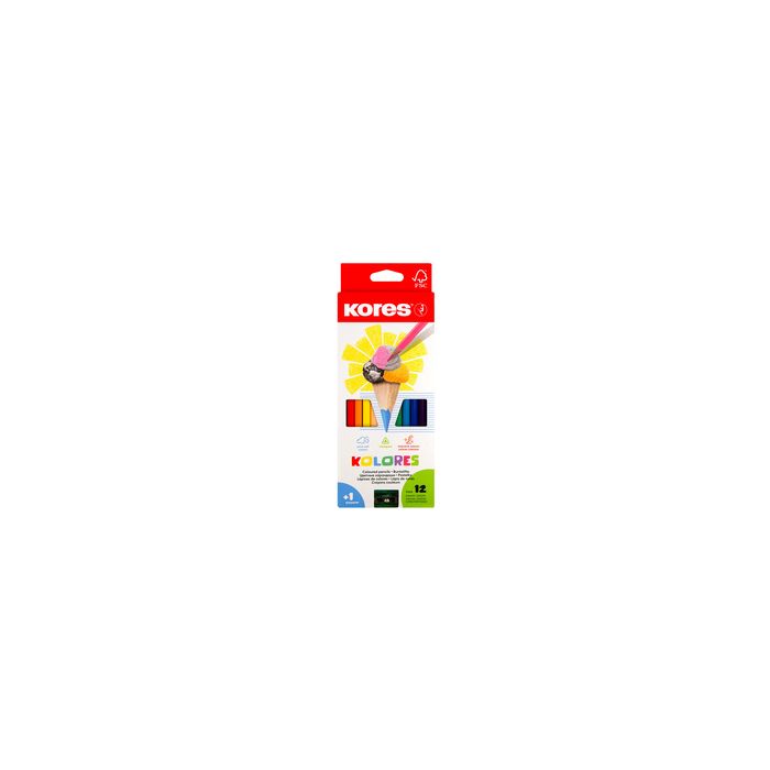 Kores Crayon de couleur triangulaire "Kolores", étui carton de 12, couleurs très pigmentées, épaisseur de la mine: 3 mm,couleurs intenses, comprend une zone d'inscription, en bois de tilleul avec mine incassable contenu: 12 pièces + 1 taille-crayon (BB93312)