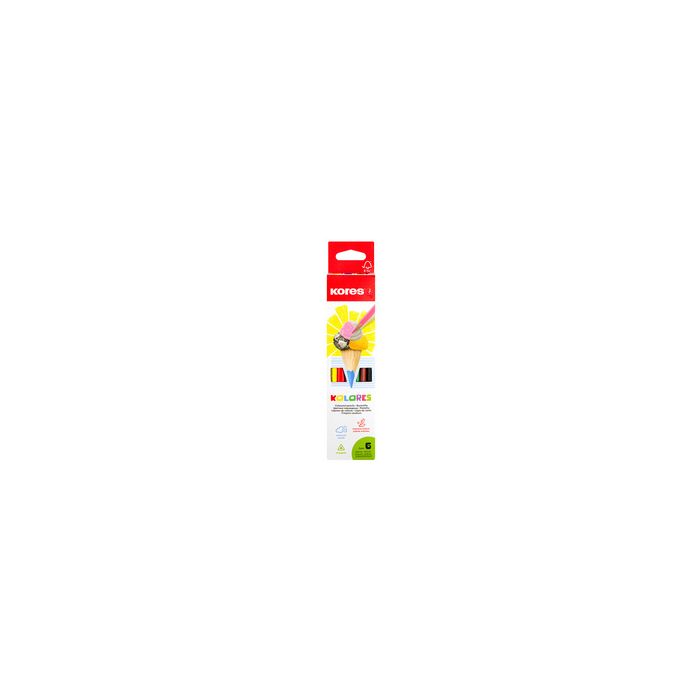 Kores Crayon de couleur triangulaire "Kolores", étui carton de 6, couleurs très pigmentées, épaisseur de la mine: 3 mm, couleurs intenses, comprend une zone d'inscription, en bois de tilleul avec mine incassable contenu: 6 pièces (BB93306)