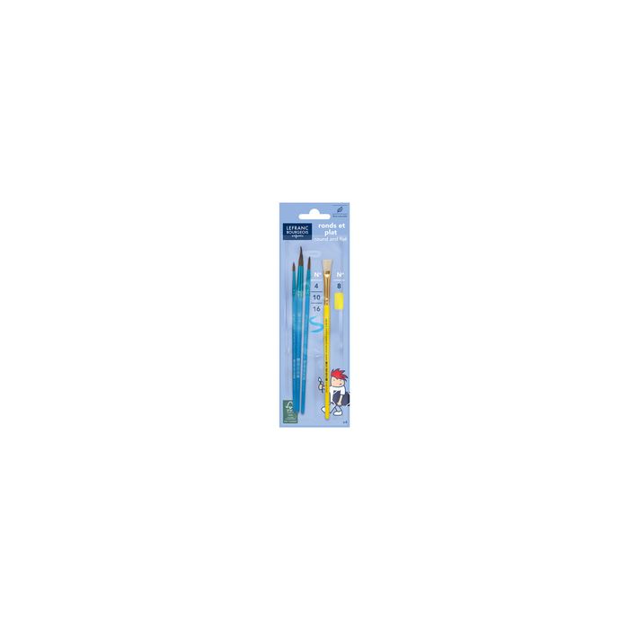 LEFRANC BOURGEOIS Lot de 3 pinceaux Pony + 1 brosse contenu: 1 pinceau poney rond en N.4, N.10 et N.16 + 1 brosse plate en soie de porc N.8 GRATUITE sous blister, pour les enfanst à partir de 3 ans contenu: 4 pièces (807520)