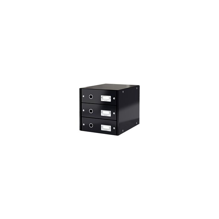 LEITZ Bloc de classement Click & Store WOW, noir 3 tiroirs, A4, carton dur avec revêtement en PP, montage à l'aide de boutons pression, protection des bords, trous de préhension et porte-étiquette nickelés, avec étiquette d'identification, (6048-00-95) dimensions du tiroir: (L)251 x (P)330 x (H)81 mm dimensions extérieures: (L)286 x (P)358 x (H)282 mm