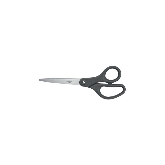 LEITZ Ciseaux Titanium, longueur: 205 mm, rond, gris pour gauchers et droitiers, en axier inoxydable de haute qualité avec revêtement en titane, lames ultra coupantes, avec vis ajustable, poignées ergonomiques avec Softgrip à l'intérieur, asymétriques, sur carton blister (5422-00-89)