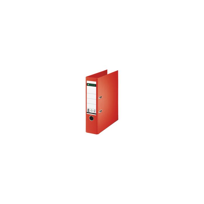 LEITZ Classeur à levier 100% papier, 180 degrés, A4, 80 mm, rouge, reliure en carton rigide, revêtement intérieur et extérieur en papier coloré, avec trou de préhension, fente, couverture, et étiquette collée au dos, mécanique de précision, en paquet de 10 pièces (1007-00-25)