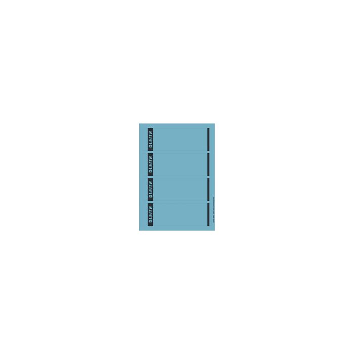 LEITZ Etiquette pour dos de classeur, 61 x 192 mm, bleu long, large, approprié pour classeurs LEITZ standards et en carton solide 1072, 1073, 1080, 1192, 1190, et 1194, inscriptible par PC, pour imprimantes à jet d'encre, laser et photocopieuse, papier autocollant, sans solvants, sur feuille A4, contenu: 100 pcs (4 pcs / planche) (1685-20-35)