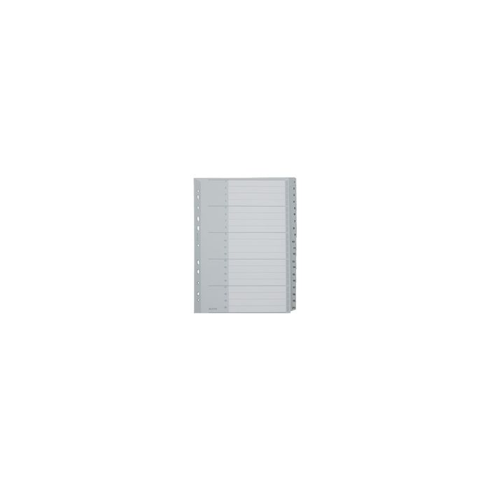 LEITZ Intercalaires en plastique, numéroté, format A4 extra large, 1-20, gris, 20 touches, en PP, 0,12 mm, avec une couverture personnalisable en carton (250 g/m2), onglets imprimés, modèle Premium, perforation Euro, dimensions: (L)238 x (H)297 mm (1284-00-00)