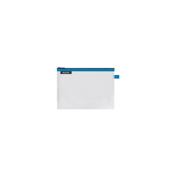 LEITZ Pochette à fermeture zip WOW Traveller, L, bleu imperméable, pour le rangement quotidien d'objets personnelspochette transparente avec fermeture zip de couleur, pochette en film EVA (éthylène, vinyle, acétate) lavable, dimensions: (L)300 x (P)6 x (H)230 mm (4026-00-36)