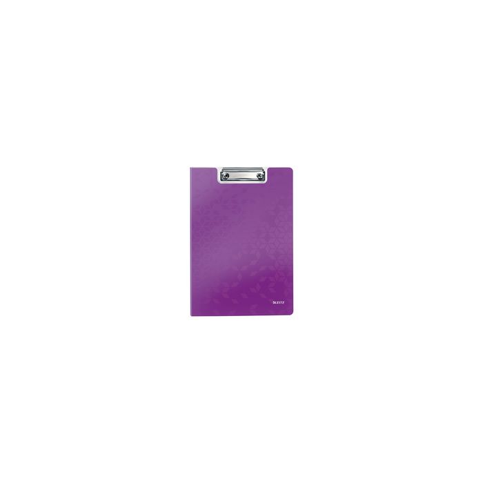 LEITZ Porte-bloc à rabat WOW, A4, polyfoam, violet couverture en relief, intérieur gris clair, clip en métal, capacité: 75 feuilles, avec pochette latérale transparente en PP pour les documents volants dimensions: (L)330 x (l)230 mm (4199-00-62/4199-62)