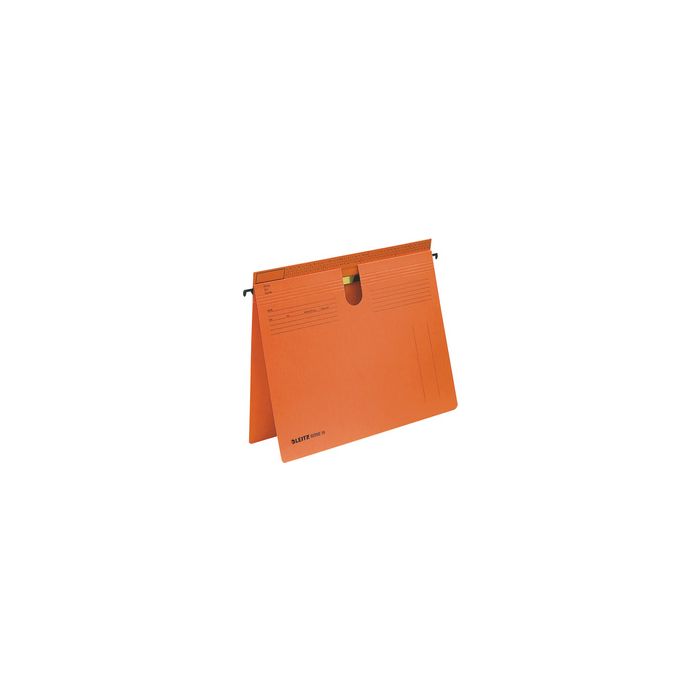 LEITZ dossiers suspendus SERIE 18, en carton manille 250g/m2------------- pour le marché: D / L / A / CH ---------------orange, reliure commerciale et administrative (renversé) encoche de préhension, bande de rangement dentelée, en paquet de 50 pièces (1814-00-45) en saillie dépassant avec impression d'organisation, dimensions selon la norme DIN 821 1814-45