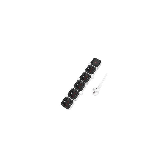 LogiLink Bloc multiprises flexible, 5 prises, noir/blanc ------------ pour le marché: D / F / NL / A / L ------------modules orientables à 180 degrés, en forme de cube, inter- rupteur marche/arrêt, IP20, puissance: 230 V/16 A, 50 Hz, 3.600 watts max., longueur de câble: 1,5 m, (LPS277) prise de courant de sécurité