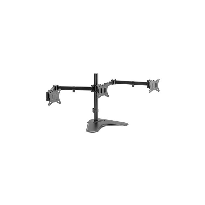LogiLink Bras support triple écran, socle, noir longueur du bras: 658 mm, pour écrans de 43,18 cm - 68,58 cm(17"-27"), capacité de charge: 7 kg par écran, inclinaison: +/- 45 degrés, pivot: +/- 90 degrés, rotation: 180 degrés, hauteur du mât: 420 mm, en acier et plastique (BP0174) compatible VESA 75 x 75 et 100 x 100