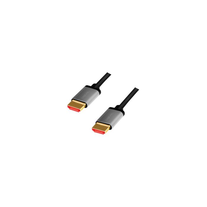 LogiLink Câble HDMI 2.1, fiche mâle A - mâle A, 1,0 m fiche mâle HDMI-A 19 broches - mâle HDMI-A 19 broches, cor- respond à HDMI 2.1 Ultra High Speed, débit de données: jusqu'à 48 Gbits/s, boîtier en aluminium, triple blindage, plaqués or, couleur : noir/gris (CHA0104)