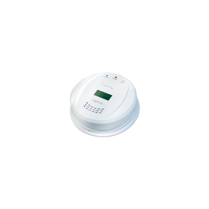 LogiLink Détecteur de monoxyde de carbone, écran LCD, blanc détecte le monoxyde de carbone et envoie un signal d'alarme de 85 dB, montage au plafond & au mur, touche pour test de fonctionnement, signal si batterie faible, homologué EN50291diamètre : 122 mm, hauteur : 36 mm, matériel de fixation & (SC0111) 2x piles alcalines AA